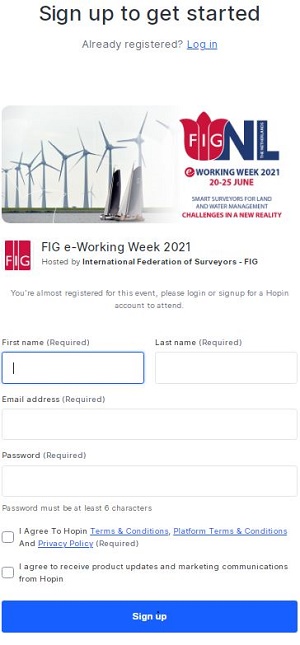 The next step in finishing your registration is to sign up at Hopin by filling in the form.